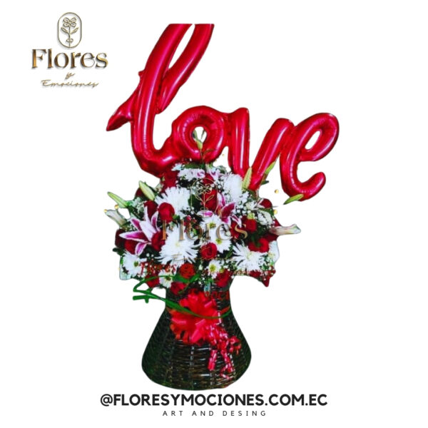 Arreglo floral en canasta con rosas, lirios girasoles, limargaritas, pestañas y follajes varios Tajeta de dicatoria y laso
