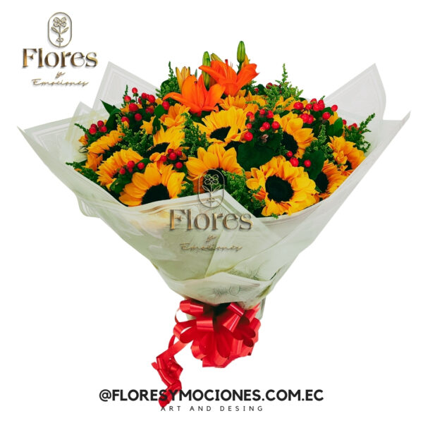 Girasoles , lirio y follajes varios