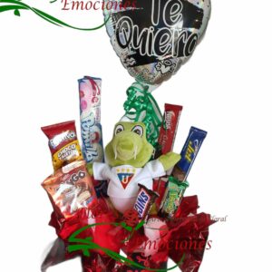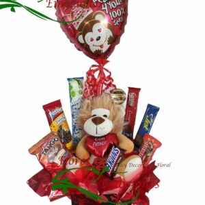 Gauyusa en carretilla para cumpleaños y toda ocasión con chocolate y globo