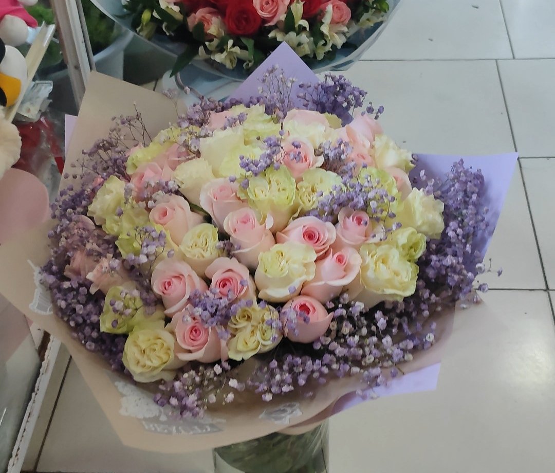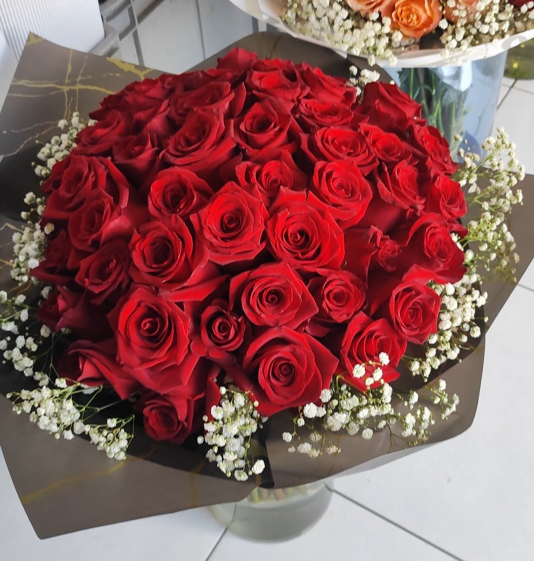 Ramo de 50 rosas decorado con detalles únicos , a tu elección